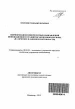 Формирование приоритетных направлений инновационного развития экономики региона тема диссертации по экономике, полный текст автореферата