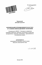 Формирование промышленного кластера в условиях инновационной экономики тема диссертации по экономике, полный текст автореферата