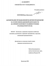 Формирование промышленной политики предприятий на основе инновационной деятельности тема диссертации по экономике, полный текст автореферата