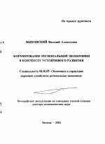 Формирование региональной экономики в контексте устойчивого развития тема диссертации по экономике, полный текст автореферата