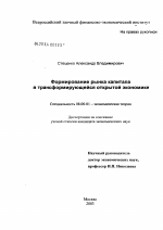 Формирование рынка капитала в трансформирующейся открытой экономике тема диссертации по экономике, полный текст автореферата