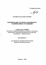 Формирование системы гармоничного развития бизнес-отношений тема диссертации по экономике, полный текст автореферата