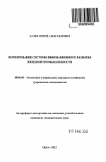 Формирование системы инновационного развития пищевой промышленности тема диссертации по экономике, полный текст автореферата