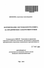 Формирование системы контролинга на предприятиях электроэнергетики тема диссертации по экономике, полный текст автореферата