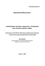 Автореферат диссертации по теме "Формирование системы социального страхования для регионов Крайнего Севера"