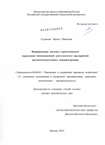 ФОРМИРОВАНИЕ СИСТЕМЫ СТРАТЕГИЧЕСКОГО УПРАВЛЕНИЯ ИННОВАЦИОННОЙ ДЕЯТЕЛЬНОСТЬЮ ПРЕДПРИЯТИЙ ВЫСОКОТЕХНОЛОГИЧНОГО МАШИНОСТРОЕНИЯ