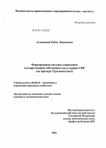 ФОРМИРОВАНИЕ СИСТЕМЫ УПРАВЛЕНИЯ ГОСУДАРСТВЕННОЙ СОБСТВЕННОСТЬЮ В СТРАНАХ СНГ (НА ПРИМЕРЕ ТУРКМЕНИСТАНА)