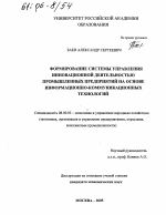 Формирование системы управления инновационной деятельностью промышленных предприятий на основе информационно-коммуникационных технологий тема диссертации по экономике, полный текст автореферата