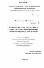 Формирование стратегии устойчивого развития муниципальных образований в ресурсно-ориентированных регионах тема диссертации по экономике, полный текст автореферата