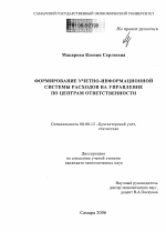 Формирование учетно-информационной системы расходов на управление по центрам ответственности тема диссертации по экономике, полный текст автореферата