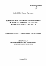 Автореферат диссертации по теме "Формирование учетно-информационной системы расходов на управление по центрам ответственности"