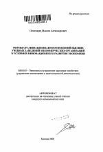 Формы организации взаимоотношений высших учебных заведений и коммерческих организаций в условиях инновационного развития экономики тема диссертации по экономике, полный текст автореферата