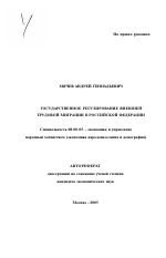Государственное регулирование внешней трудовой миграции в Российской Федерации тема диссертации по экономике, полный текст автореферата