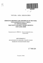 Информационно-аналитическая система управленческого учета в учреждениях высшего профессионального образования тема диссертации по экономике, полный текст автореферата