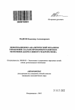 Информационно-аналитический механизм управления сбалансированным развитием экономики депрессивного макрорегиона тема диссертации по экономике, полный текст автореферата