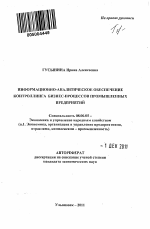 Информационно-аналитическое обеспечение контролинга бизнес-процессов промышленных предприятий тема диссертации по экономике, полный текст автореферата