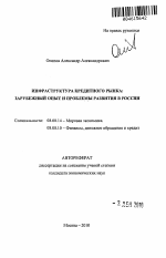Автореферат диссертации по теме "Инфраструктура кредитного рынка: зарубежный опыт и проблемы развития в России"