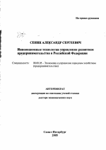 Инновационные технологии управления развитием предпринимательства в Российской Федерации тема диссертации по экономике, полный текст автореферата