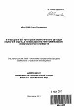 Инновационный потенциал энергетических сетевых компаний тема диссертации по экономике, полный текст автореферата