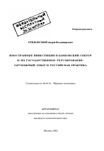 Автореферат диссертации по теме "Иностранные инвестиции в банковский сектор и их государственное регулирование: зарубежный опыт и российская практика"