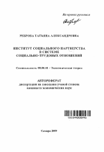 Институт социального партнерства в системе социально-трудовых отношений тема диссертации по экономике, полный текст автореферата