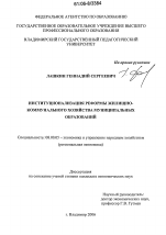Институционализация реформы жилищно-коммунального хозяйства муниципальных образований тема диссертации по экономике, полный текст автореферата