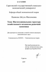 Институциональная структура хозяйственного механизма рыночной экономики тема диссертации по экономике, полный текст автореферата