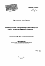 Институциональное проектирование генерации знаний хозяйствующими субъектами тема диссертации по экономике, полный текст автореферата