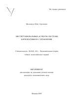 Автореферат диссертации по теме "Институциональные аспекты системы корпоративного управления"