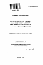 Институциональные факторы инвестиционного развития в постсоветском пространстве тема диссертации по экономике, полный текст автореферата