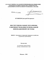 Институциональные механизмы совершенствования региональной инновационной системы тема диссертации по экономике, полный текст автореферата