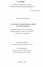 Институциональные основы развития местного хозяйства тема диссертации по экономике, полный текст автореферата