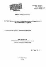 Автореферат диссертации по теме "Институциональные предпосыки инновационного экономического роста"