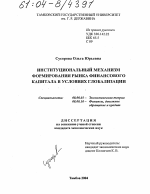 Институциональный механизм формирования рынка финансового капитала в условиях глобализации тема диссертации по экономике, полный текст автореферата