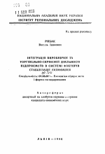 Rvbak V.I.- Intgration of production trading servicing activity of enterprise In the systen of stabilization of economics.