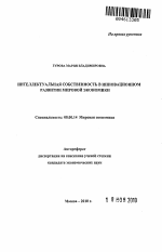 Интелектуальная собственность в инновационном развитии мировой экономики тема диссертации по экономике, полный текст автореферата