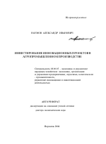 Инвестирование инновационных проектов в агропромышленном производстве тема диссертации по экономике, полный текст автореферата