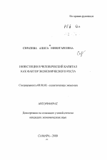Автореферат диссертации по теме "Инвестиции в человеческий капитал как фактор экономического роста"