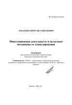 Автореферат диссертации по теме "Инвестиционная деятельность и налоговые механизмы ее стимулирования"