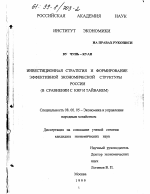 Инвестиционная стратегия и формирование эффективной экономической структуры России тема диссертации по экономике, полный текст автореферата