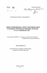 Инвестиционный аспект формирования основных производственных фондов в растениеводстве тема диссертации по экономике, полный текст автореферата