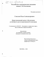 Инвестиционный аспект обеспечения устойчивого роста национальной экономики тема диссертации по экономике, полный текст автореферата