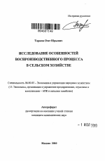 Исследование особенностей воспроизводственного процесса в сельском хозяйстве тема диссертации по экономике, полный текст автореферата
