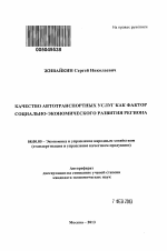 Качество автотранспортных услуг как фактор социально-экономического развития региона тема диссертации по экономике, полный текст автореферата