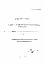 Качество рабочей силы в условиях обновления производства тема диссертации по экономике, полный текст автореферата