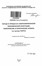 - Канада в процессах североамериканской экономической интеграции: теоретические и практические аспекты (на примере НАФТА)