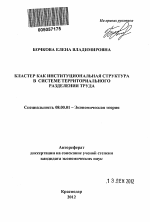Кластер как институциональная структура в системе территориального разделения труда тема диссертации по экономике, полный текст автореферата