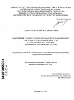 Кластерный подход к стимулированию инновационной деятельности в промышленности строительных материалов тема диссертации по экономике, полный текст автореферата