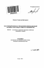 Кластерный подход к управлению инновационной активностью в индустрии гостеприимства тема диссертации по экономике, полный текст автореферата