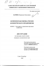 Комплексная оценка рисков коммерческого предприятия тема диссертации по экономике, полный текст автореферата